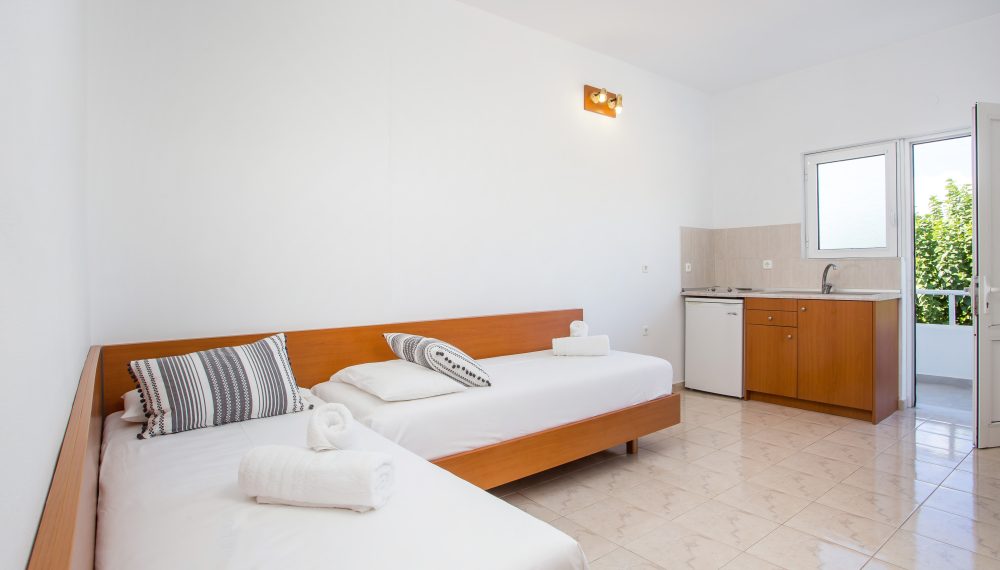 Each room has a balcony overlooking the pool and includes an en-suite bathroom with shower, air conditioning, Wi-Fi, fridge, kettle, hairdryer and bathroom toiletries.